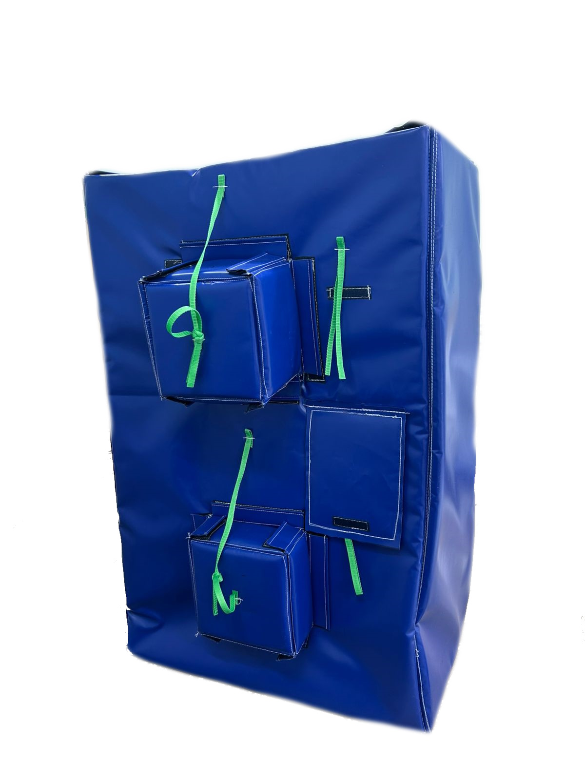 Чехол утепленный трехслойный, два наружных слоя из ПВХ ткани, внутренний слой из вспененного полиэтилена s=10мм. Цвет ткани голубой или серый, чехол легко сгибается по всем линиям сгиба. Для подвижных элементов изделия предусмотрены карманы на липучках.